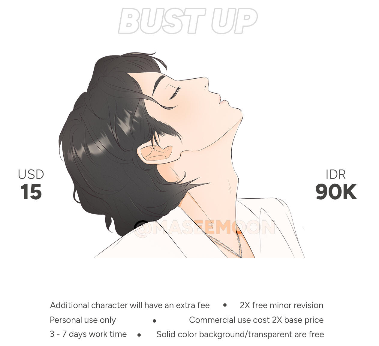 The default size of the commissions is 2500x2500 px, clients can modify the size before I start working on the piece